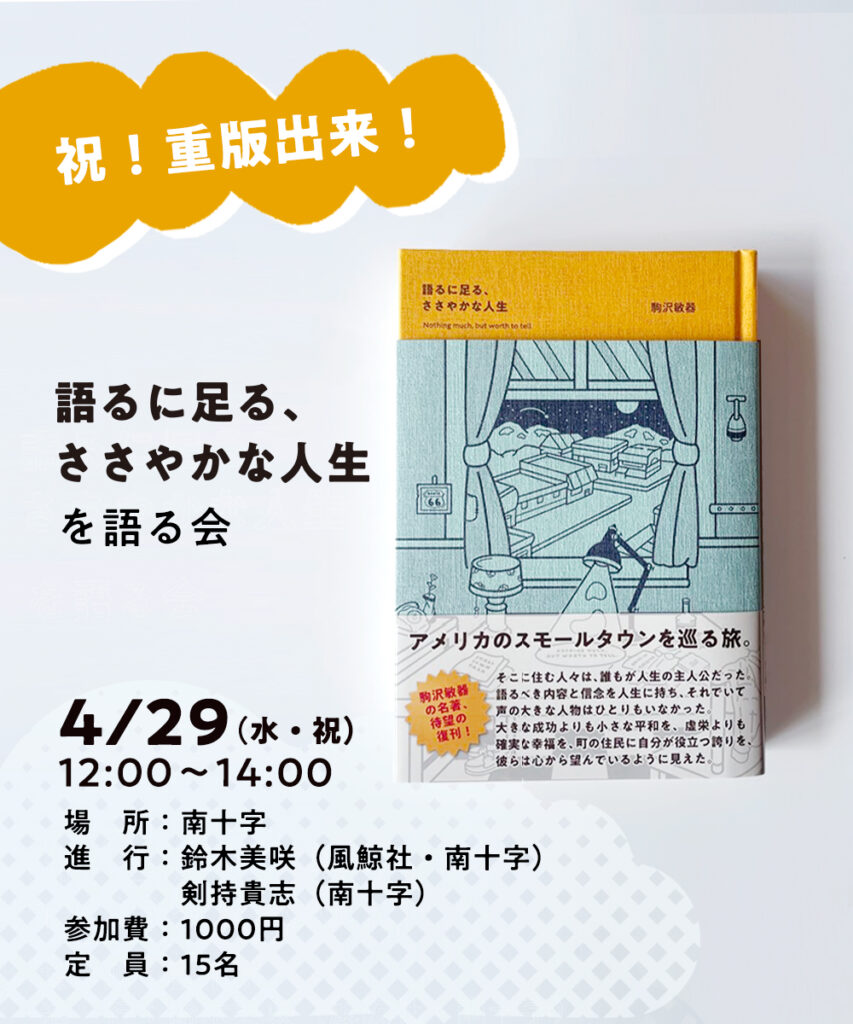 重版記念イベントとして、ささやかに南十字でトークイベントを開きます。