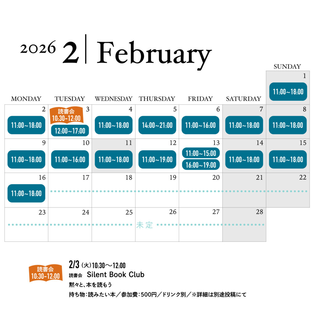 (2週間ごとに営業日をアップしています。変更になる可能性もあるので、確実な営業時間はその日のSNSの投稿をご確認いただくと確実です。)