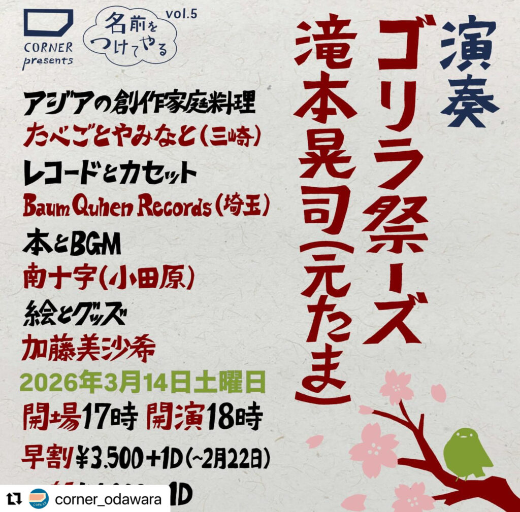 3/14(土)は、小田原のオルタナティブポップアップスペースCORNERさん presents『名前をつけてやる vol.5』に出店します。